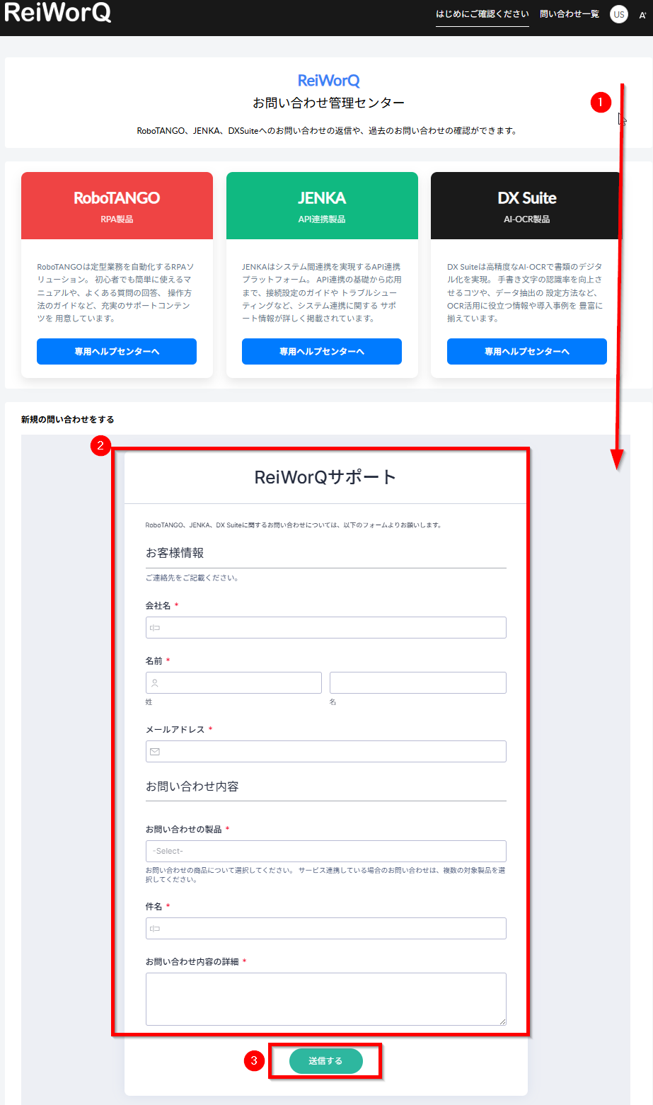 お問い合わせ管理センターの下のほうのフォームに必要情報を記載して「送信する」をクリックしてください。