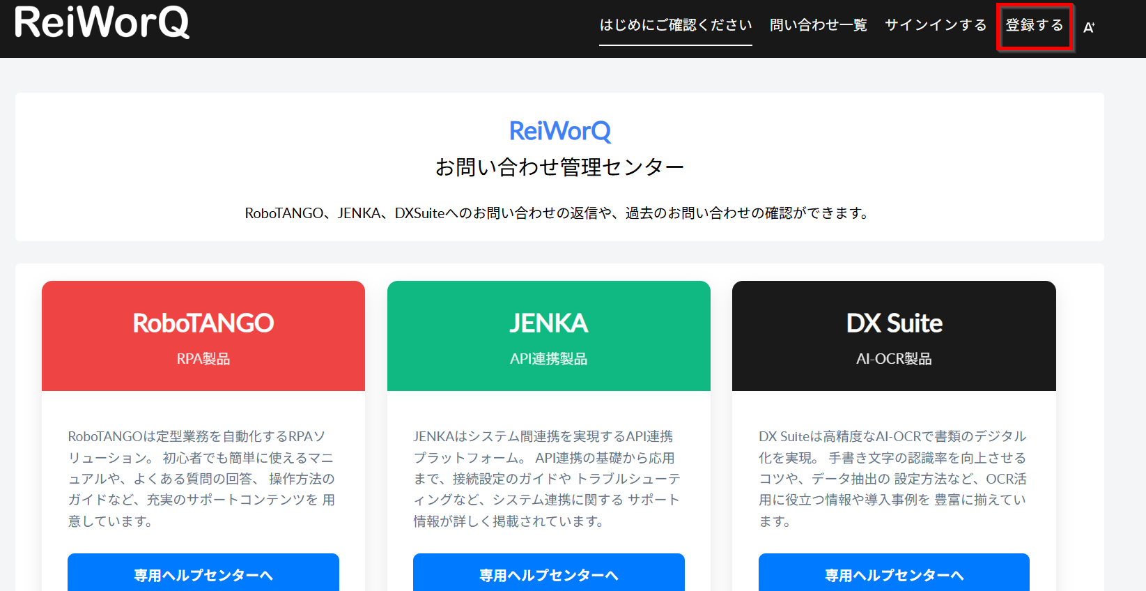 ユーザー登録を行うと過去のお問い合わせや進捗を確認することができます。